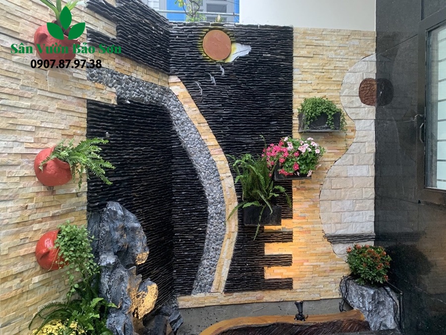 Tiểu cảnh tường thác nước hài hòa giúp không gian trở nên bắt mắt và sang trọng hơn